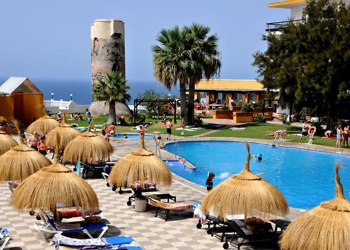 Det 3-stjärniga förstklassiga Hotel Salobrena Suites, som har utsikt över havet, ligger ungefär 10 minuters bilfärd från Playa del Pozuelo. Gästerna på detta hotell kan koppla av i en poolbar eller vid en pool.